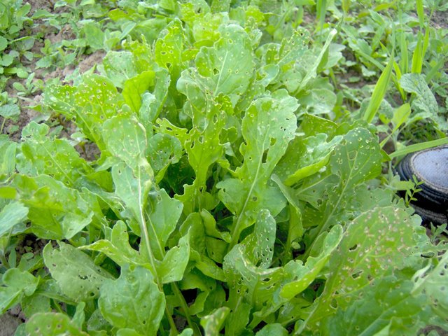 The hot weather also brought out the dreaded flea beetles, those nasty tiny bugs that quickly shoot holes through anything in the mustard family. Unfortunately, that list includes all the spring favorites like arugula, pepper cress, mizuna, and baby bok choy. We are trying to rescue a few of those, but we will probably have to start over with arugula because it just tastes bitter—a defense response to the sudden attack.
