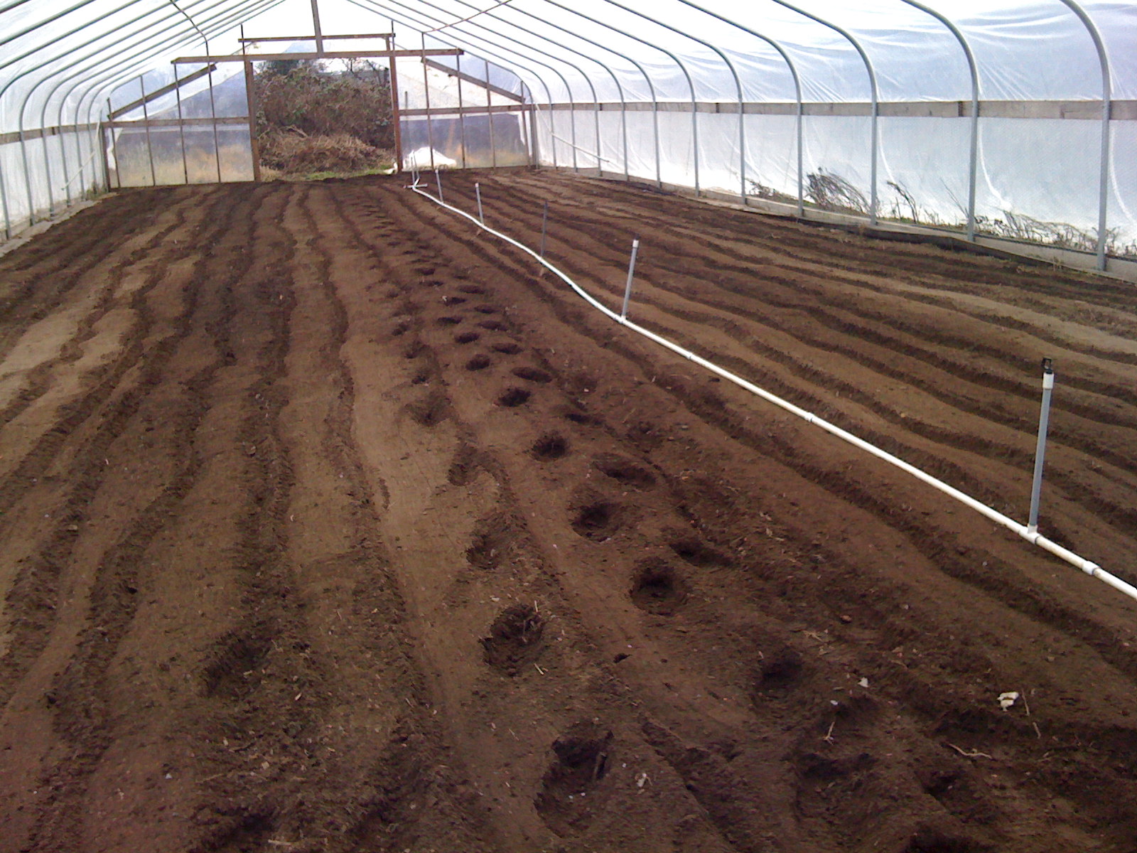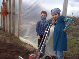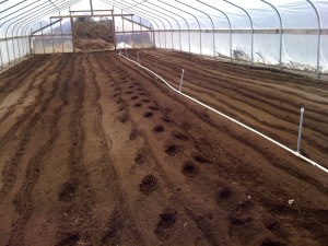 Today we planted the big greenhouse full of salad greens, so that we can start our spring shares with tender greens. Mike put down fertilizer and lime, and rototilled it in, softening the soil into a nice seedbed. It was actually hot inside, and the humid air was full of the warm, delicious scent of dirt. We’re working on the two smaller greenhouses so that we can get some early peas planted. There should be time to get the peas grown and picked in time to set out the tomato and pepper plants in May. I’d also like to fill a greenhouse with sweet potato plants, but we’ll have to see how that goes.