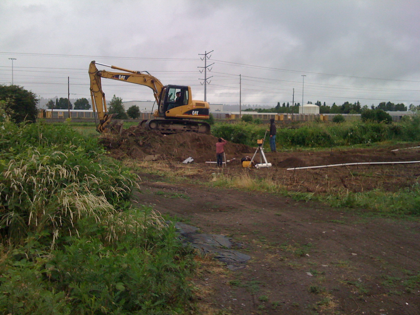 Here’s Cosmo admiring the big excavator digging drainfield trenches.