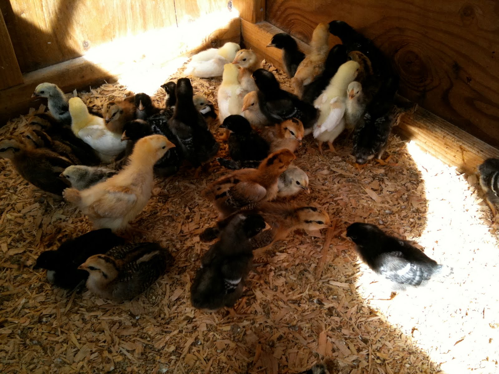 The new chicks arrived last week, and are growing well. There are 75 and they’re supposed to be girls. They should all start laying eggs in late summer, as the current hens are getting ready for their vacation.