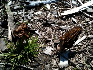 The morels I found in front of the greenhouses the first warm day last week. Surprise! Too bad there were only a dozen or so. The only questions are, where did they come from and how can we make them happy enough to spread?