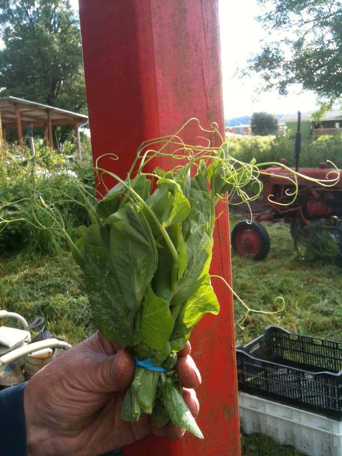 I’ve been looking at the blog posts from last year, to compare what we had at this time last summer, because everything just seems so green. Usually we would have carrots and beets by now, and we’d be picking peas. That’s an indication right there of how this summer is different. We planted those things just as early as we usually do—March or April. The peas are just now beginning to flower (as are those of many other farms) which means we’ll be picking pods in about two weeks.