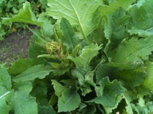 We tried to overwinter the famed “Yokatta-Na” that was so popular last spring, It died over the winter, but has regrown and is sprouting. Slightly bitter, and tastes good, but not quite as good as the Rapini, queen of the spring.