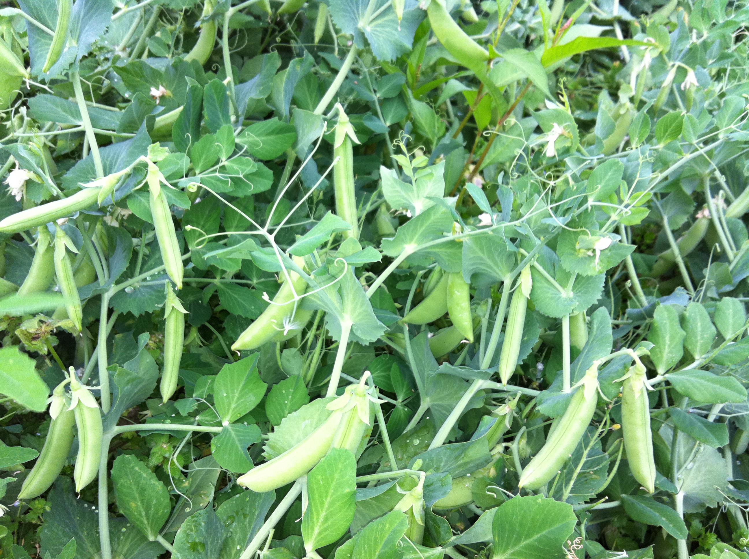 When we got back last Saturday, we found that the peas were ready to pick! Everything had turned into a jungle of weeds. My roses were buried by Bindweed.