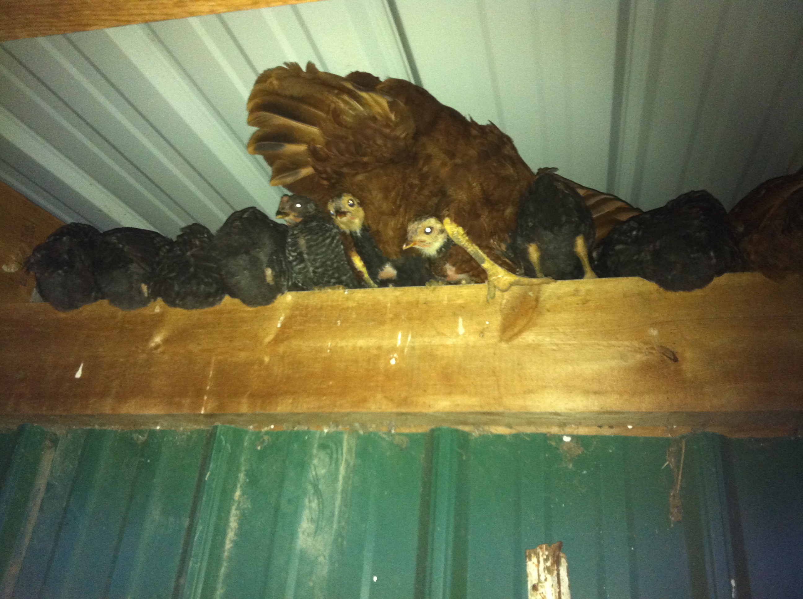 And, for those of you who have been watching the rogue mama chicken and her babies, all 15 are still alive and well, but she has decided that they don’t need her anymore, so she’s sitting on a new nest of eggs. She kicked off another hen and took over. She taught them how to roost before she sent them packing.