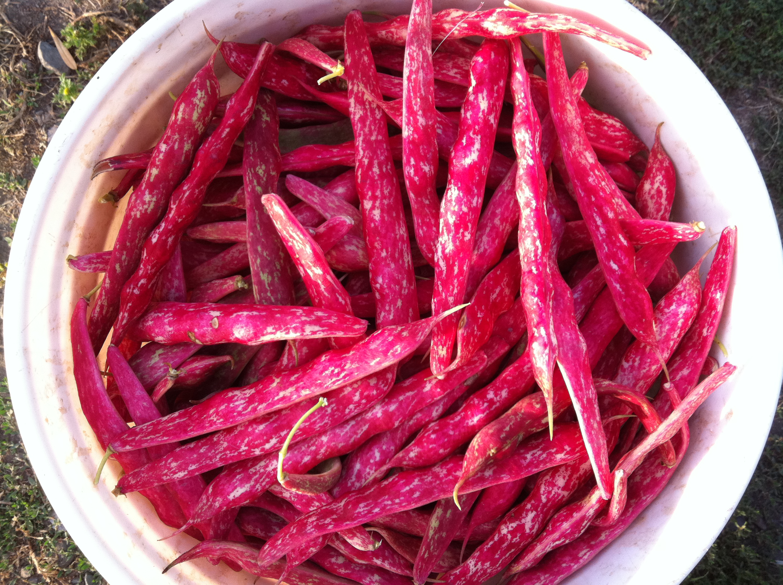This variety is from Italy, "Stregonta". It means "sorceress". It was supposed to be a pole strain, and we were saving seed, but it turned out to be a bush variety and they are done WAY early. They are pretty and delicious, nonetheless.