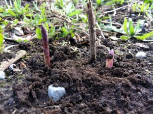 The first spears of our asparagus patch poking out to greet chilly air. We won't be able to harvest anything until next spring. The plants need all the energy they can get from the aerial parts.