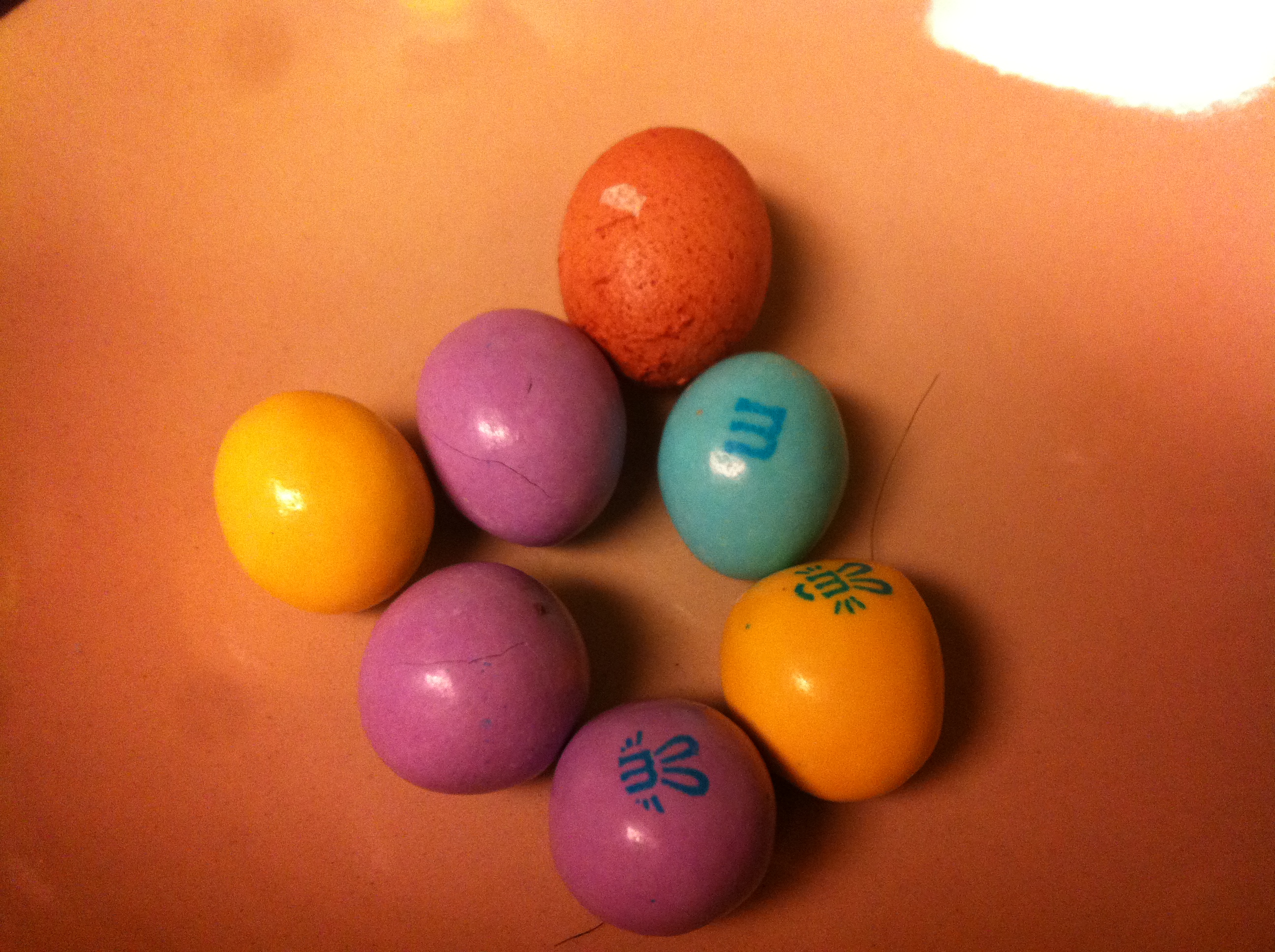 The new pullets are starting to gear up for laying, too. When the girls start out, they make a lot of practice eggs. Sometimes they’re funny shapes, sometimes not complete. Here are a couple that survived to be documented: