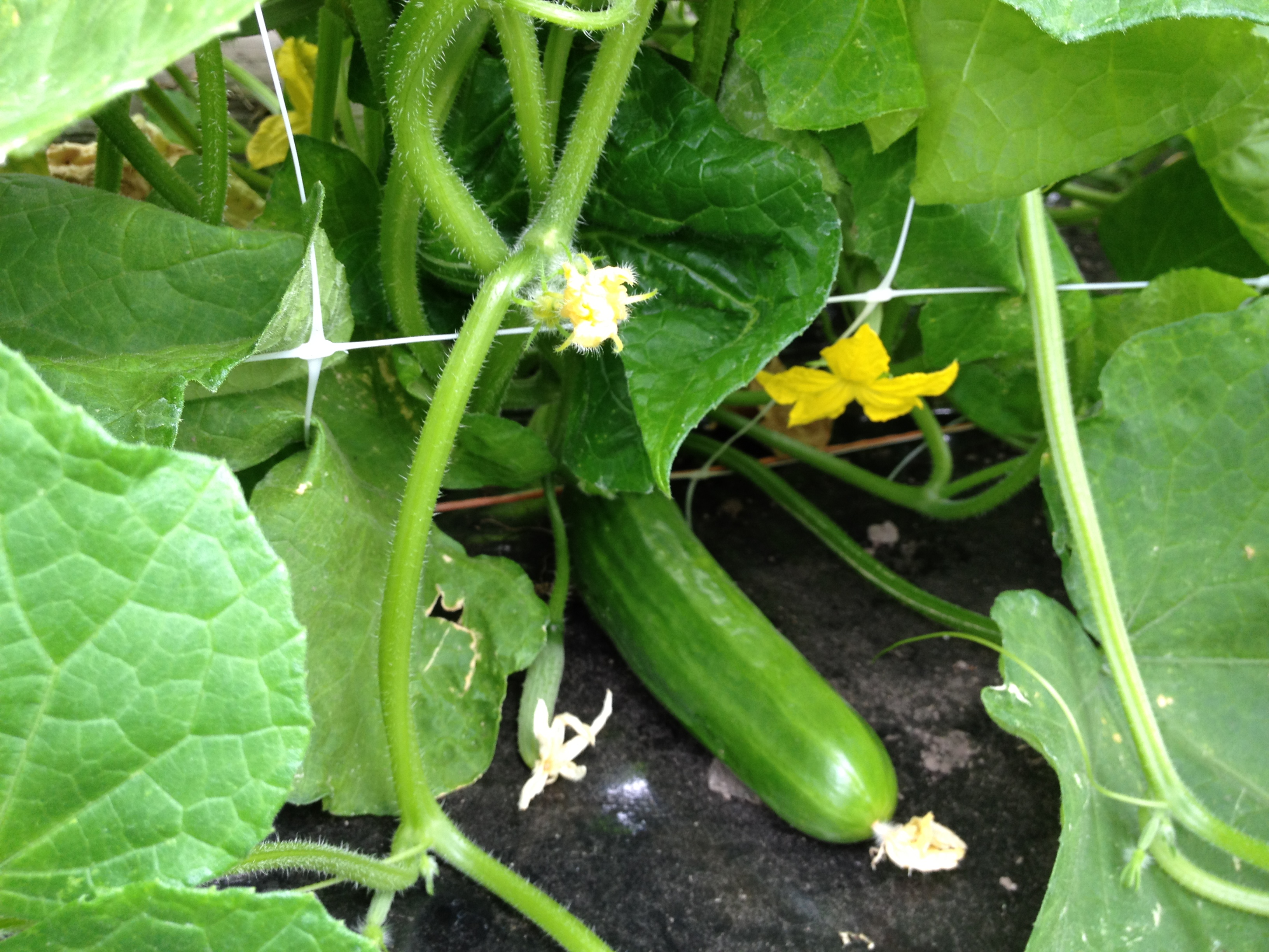 Peek-a-boo! Cucumbers start setting fruit at the bottom of the plants, so the earliest harvest means crawling on the ground.