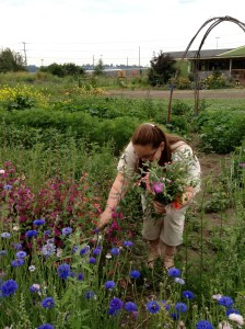 Something else to take advantage of is the U-Pick Cutting Garden. We plant all these beautiful flowers, and weed and water them, just for you—our loyal subscribers! So please come down and get a HUGE bunch of blooms. Kim here did herself proud and got enough for FOUR VASES! It makes me so happy to see people enjoying them! See my separate post about cutting flowers here.