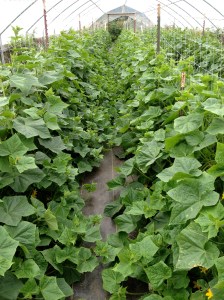 It’s been about 10 days since I pruned and trained the cucumbers, and look what’s happened! The vines are spilling everywhere. I had to do serious pruning today just to get in. There are so many little fruits though! We’ll be rolling in cukes soon!