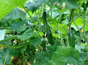 A lot is happening now that the real summer is here. The squash and cucumbers are pouring out of the plants, and the tomatoes, peppers, and eggplant are setting fruits. Basil will be here soon, as well as more dill and cilantro, and a new crop of carrots and beets are not far away.