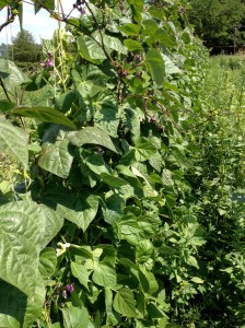 Our u-pick beans are a colorful mix of purple, yellow, green, and stripes. All are snap beans, to eat fresh and whole. 220′ of vines for CSA members to pick from.