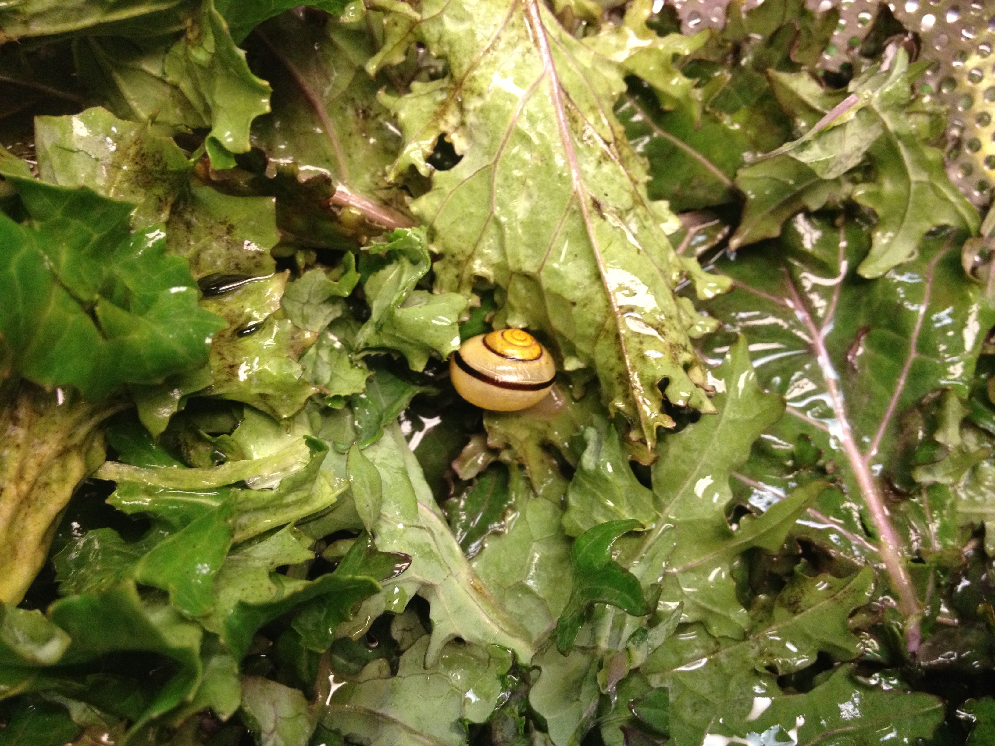 Picking yummy greens in the wet season means you might find a critter in them. It just means they taste good. It even happens to me. I just took it out and put it outside. No biggie.