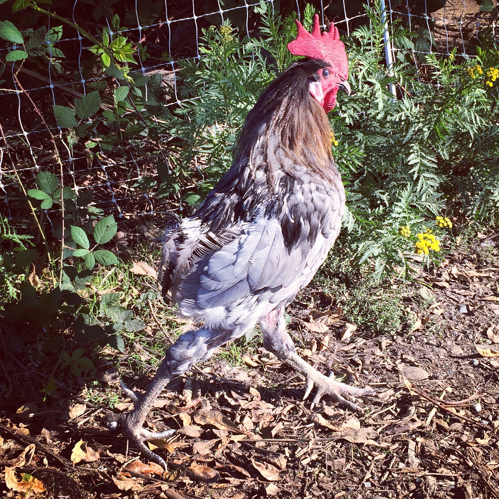 Chickens, like all birds, lose their feathers in the fall. Their old-fashioned bird genes tell them they need a fresh set of plumage so they can fly south, but chickens don’t fly. They just need new clothes for winter. That’s why all of our chickens look so ratty right now.