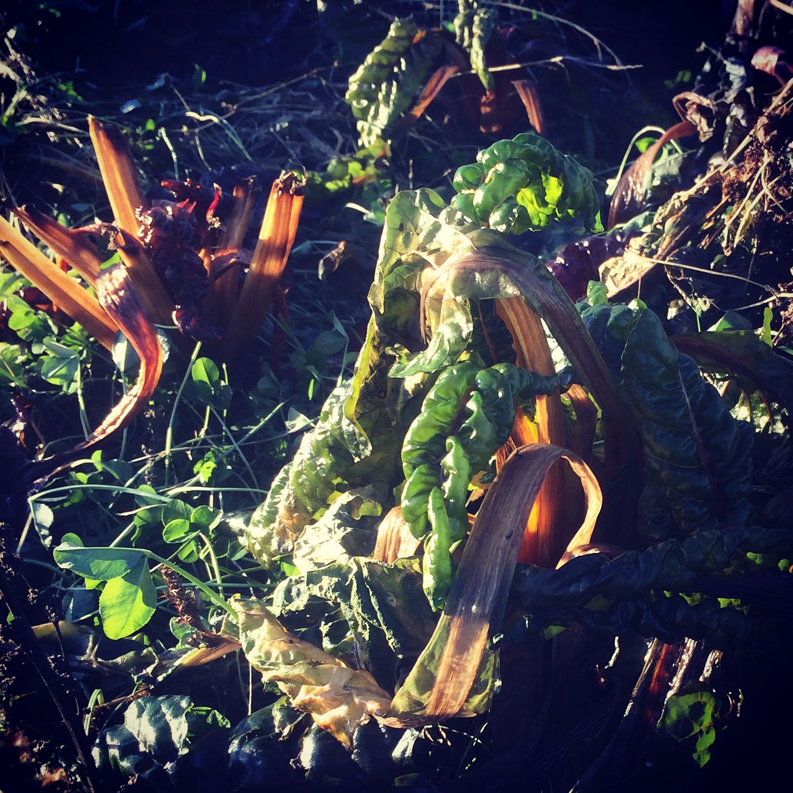 Our Swiss Chard plants survived the week of freezing temperatures, but the leaves are cooked. Hopefully, they will grow new leaves after the weather warms.