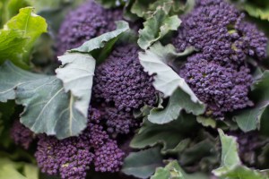 Purple Sprouting Broccoli. Eat it all: stems, leaves, and florets.