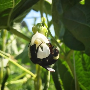 Until this year I didn’t realize that Hummingbirds love bean blossoms! There have been several that fly in and out of the bean greenhouse, whether I’m in there or not. And now, they are frequenting the pole bean rows outside. We have several Anna’s Hummingbirds that overwinter and nest here, and as a result, the whole families are chilling in the beans, sitting on the wire and chattering.