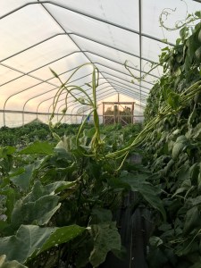 But now we are in September, and everything is planted for the year. (Well, I have one more greenhouse to sow in greens next week, but it’s not quite ready yet.) If you’ve been around the CSA block before, you may be aware that all of the winter crops need to reach full-size before mid-October. Not because of cold temperatures, but because our shortening day length doesn’t provide enough sun for photosynthesizing and plant growth. Many crops will hold in the ground all winter, but they won’t actually do any growing after October.