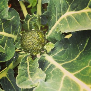 The Broccoli crowns are about the size of a 50¢ piece now, and they’ll be ready for you in just another week or two!