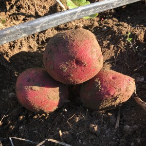 This week I’m digging “Strawberry Paw” potatoes. They’re beautifully red on the outside, and snowy white on the inside, and they were very productive this year. I have no idea why they bear this name.