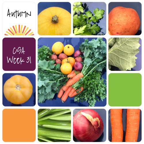 Fall Food: Potatoes, Spaghetti Squash, Onions, Carrots, Kale or Celery, Tomatoes or Beets, Garlic, Cilantro or Parsley