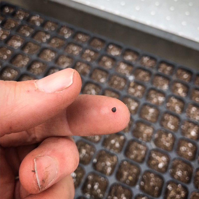 It’s hard to believe, but its already time to plant fall and winter crops. This is a Brussels Sprout seed. They’ll grow in the greenhouse for a month or so, then get planted outside in June, and they’ll be ready to harvest October through the end of CSA season.