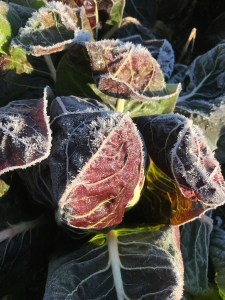 Frost looks pretty on red or green leaves, but that frost can burst cell walls and ruin leaves, several layers down. It also turns delicate broccoli buds into black mush. Nobody wants to eat that.