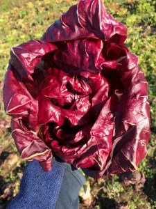 Colorful radicchios are quite hardy in cold temperatures. I harvested all that were left before the Thanksgiving weekend, just to be safe. They even lose some bitterness with the cold.