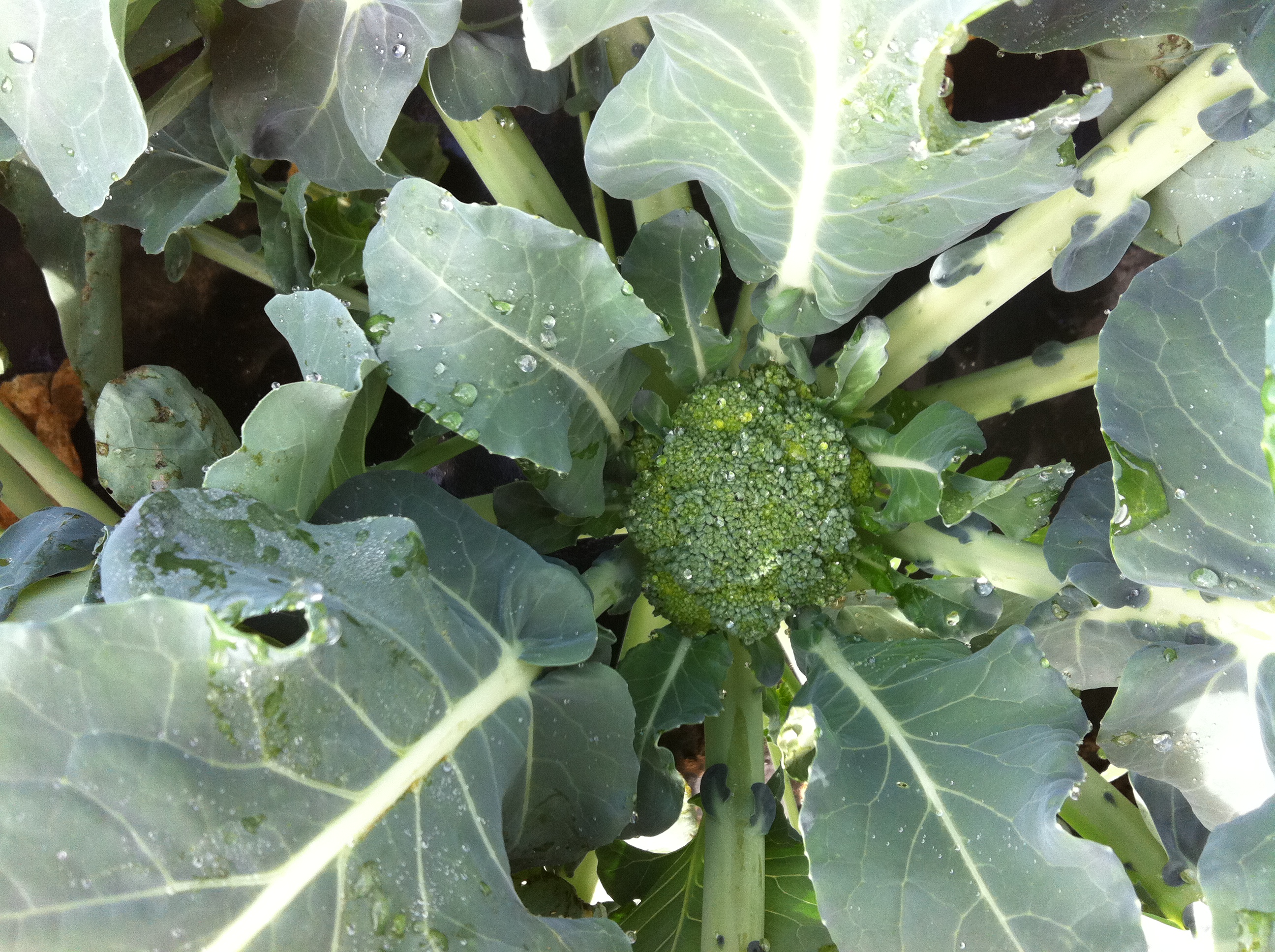 If you look closely at a head of broccoli, you will notice that is made of countless tiny, closed flower buds. If not cut at the proper time, those tight green crowns will bloom, and one plant can quickly become a singular, 2-foot diameter bouquet of charming, tiny, golden flowers. Bees adore them, but humans don’t appreciate a blooming broccoli. Now to be frank: partaking of broccoli involves tolerating some bugs. Just let yourself be reminded that it is organic! Immediatley before cooking, soak your broccoli, head down, in cold, salted water (1 tsp salt to 8 cups water) for 5 minutes. Any critters will float to the top where you can rescue them or allow them to suffer a salty death. (NOTE: If you soak in salt water and then store it, it will become rubbery and wilted. Make sure and wait until right before eating for the salty bath.)