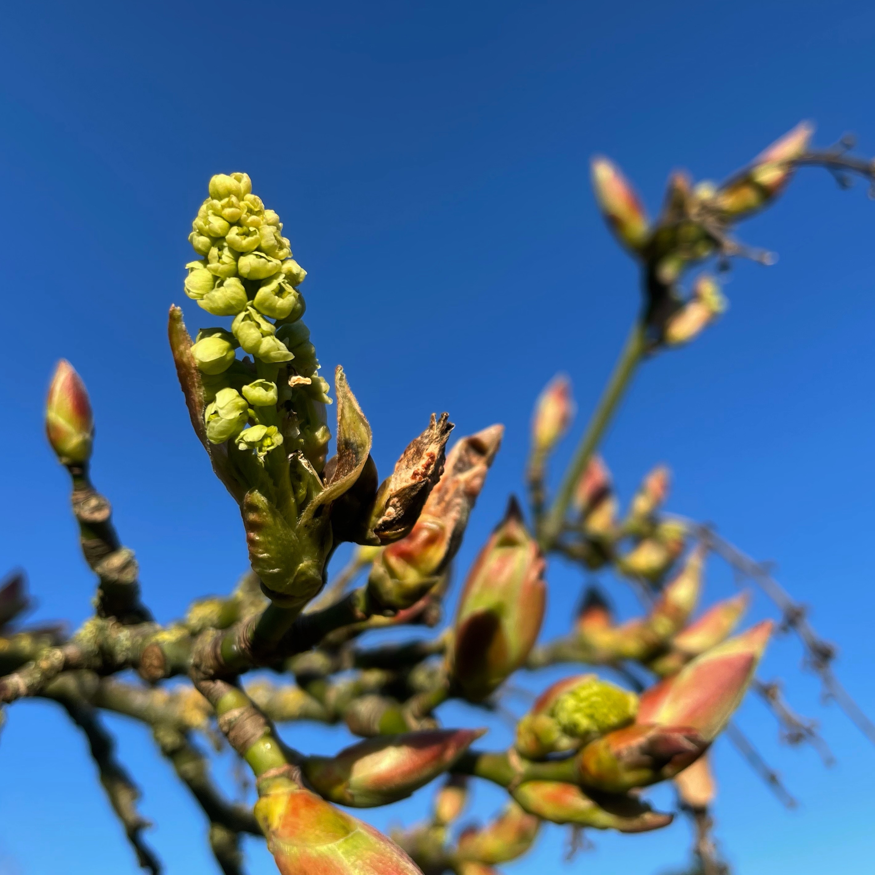 The days are getting longer, and the prop house is filling up! The garlic is growing tall outside, and the earliest weeds, our native cover crop, are blooming and ready to provide for the earliest pollinators. Up to now, I’ve only seen the honeybees out foraging, but the earliest queen bumblebees will emerge soon, and the willows will be ready to feed their bee children with protein-rich pollen.