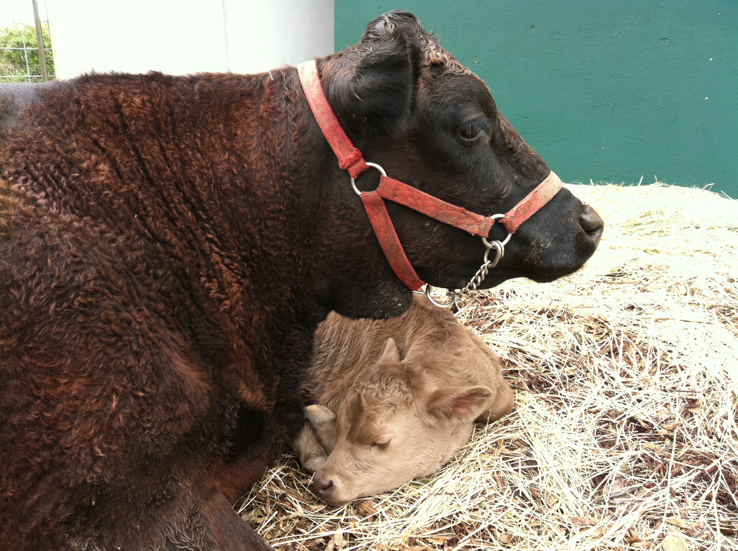 Her name is Beauty (on her papers she’s Beauty of Windy Acres), and she is beautiful. She is now 18 years old, and her original owner in Oregon had trained her to be a perfect family milk cow in her youth. She was patient and well-behaved while we learned how to milk—those first few weeks the milking took forever, but she has the sweetest, creamiest milk ever. She gave birth to a heifer (female calf) in 2007, who we named Juniper. Juniper had her first calf in 2009, and as Beauty heads into retirement we decided to keep her most recent calf, who we named Dulce, as in Dulce de Leche. (This little heifer’s father was named Taco.) All three girls are due this spring/summer so we will have three calves this year!