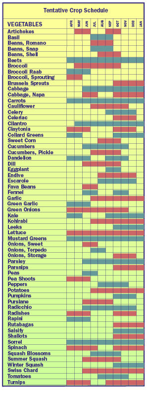 Study our Crop Schedule below to find out what you might be able to expect each week.