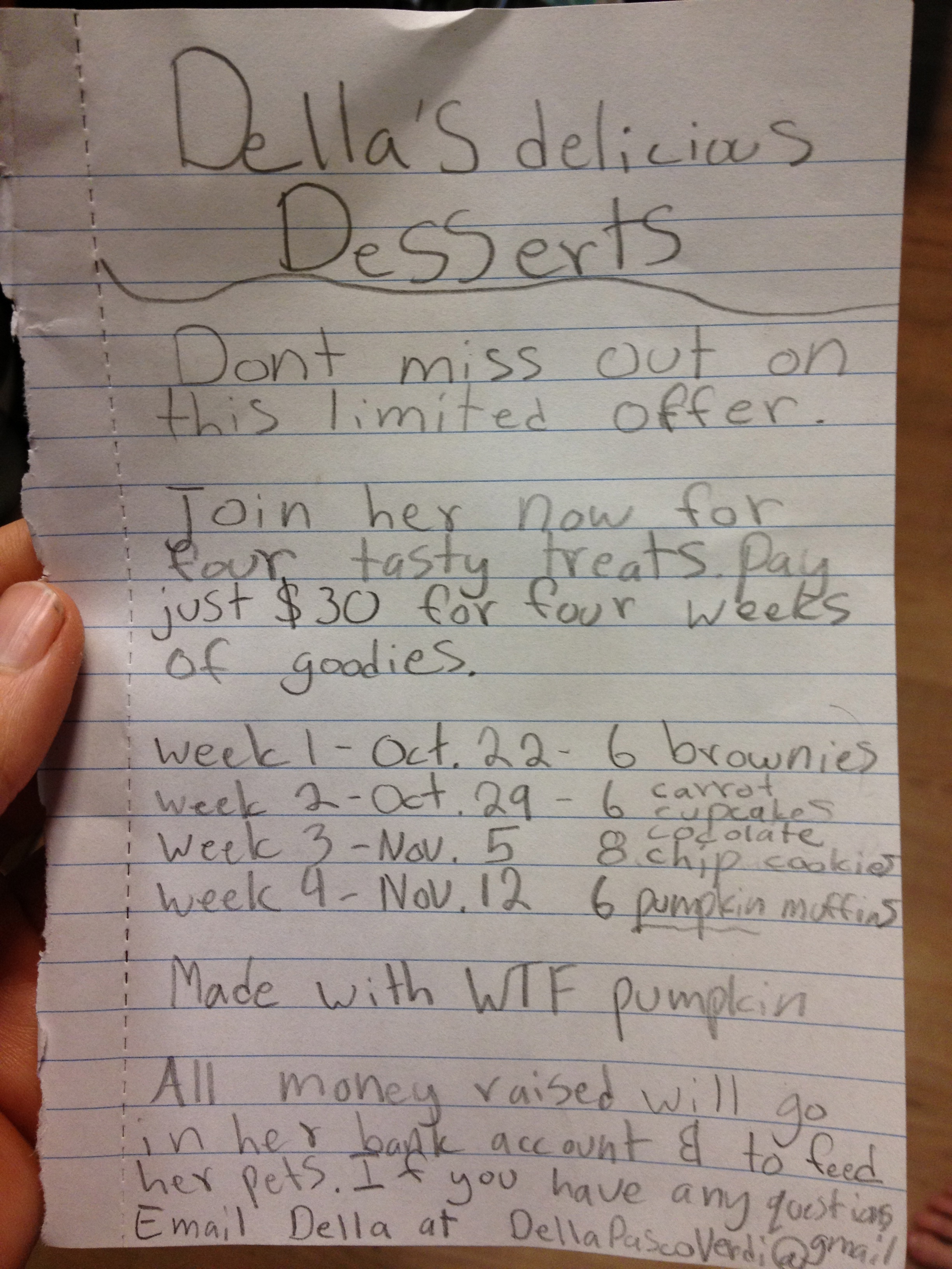 Della is starting a CSA of her baked goods. She does a delicious job, and if you act now, she’ll add on a pumpkin pie for Thanksgiving!