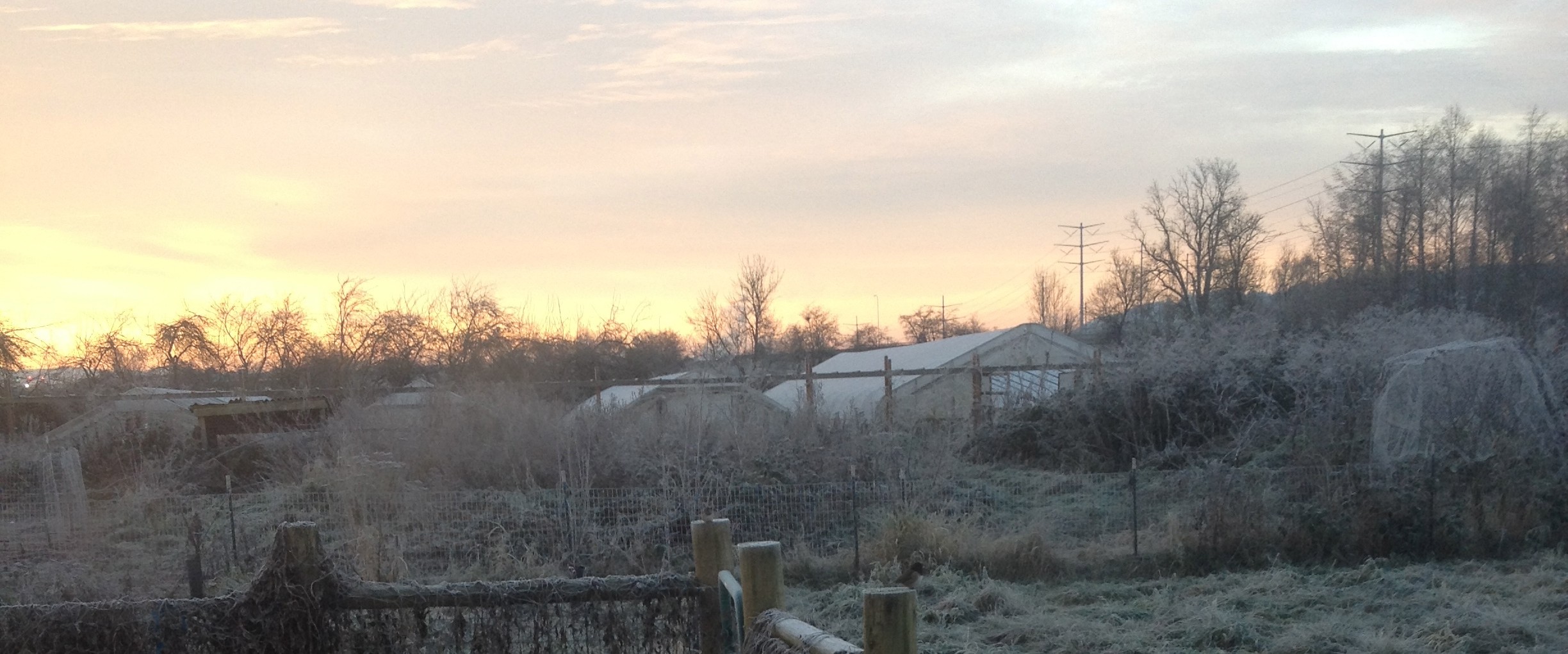 Greenhouses at six degrees. Brrrr. Below freezing for 10 days and this was the lowest point.