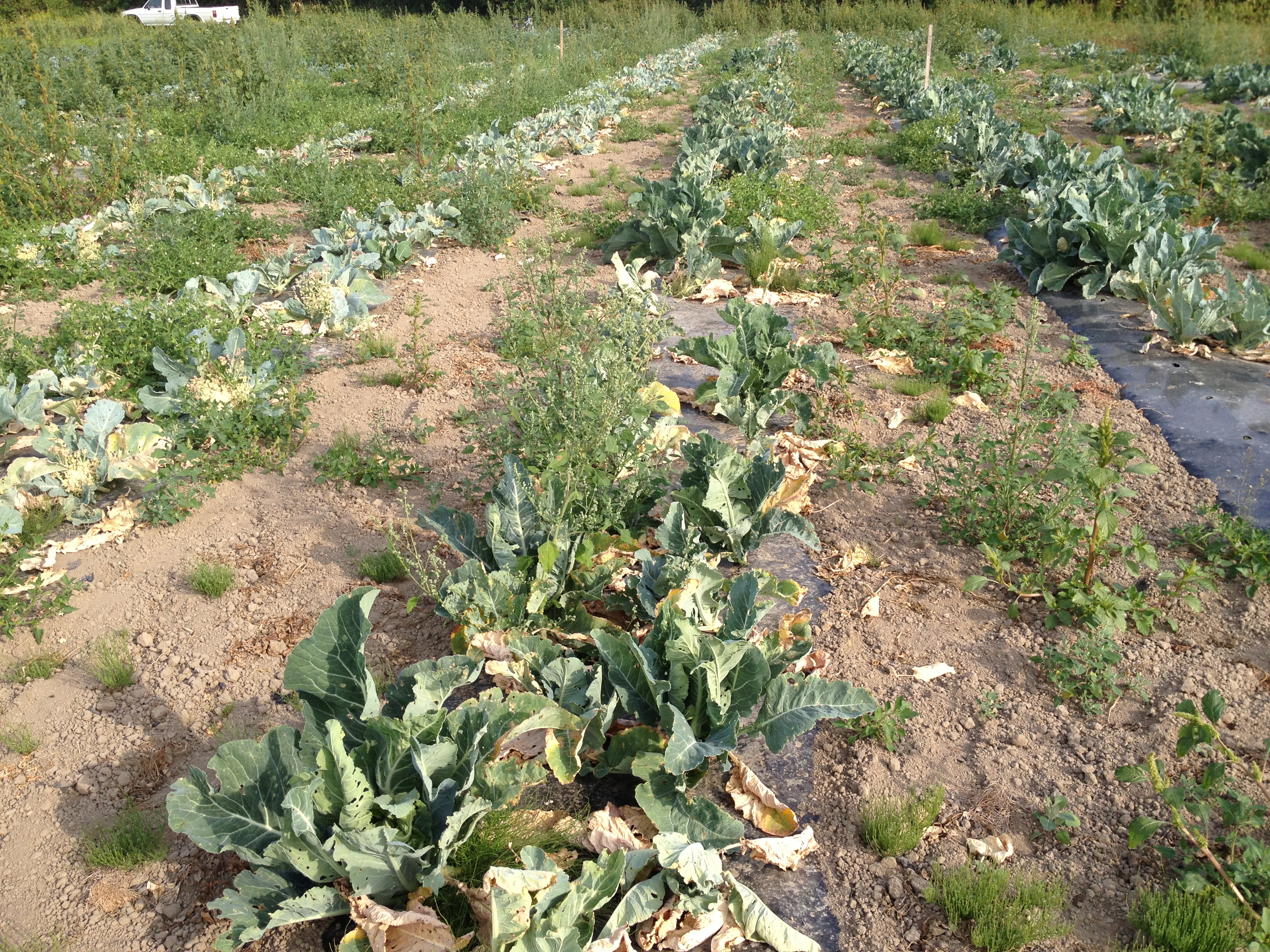 The broccoli is in full swing now. I held my breath for several months, waiting to see if we would have any this year, after The Great Brassica Disaster of 2012. We lost our entire drop of thousands of cauliflower and broccoli plants to the dreaded Clubroot, a fungus that inhabits the roots of plants in the brassica family and slowly starves them. It affects other plant families as well, but it’s really evident in the brassicas because they have such a small root system to support a lot of top growth. The fungus lives in the soil and can remain there for decades. So, our organic control method is to not grow any brassicas on our farm. WHAT? That means no kale, turnips, cabbage, arugula—it’s a long, long list. We depend on brassicas here.